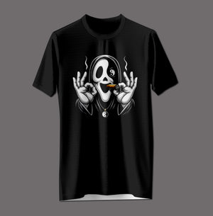 High-vibe horror meets inner peace. A bold parody of iconic "Ghostface" aesthetics blended with Yin-Yang symbolism and a laid-back attitude. The ultimate "chill or be chilled" tee.