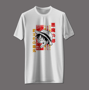 A gritty, street-inspired design featuring Luffy adjusting his iconic straw hat. With "WE GO TO THE NEW WORLD" in a distressed, block-font overlay, this piece embodies the determination of the Straw Hat crew entering the Grand Line’s most dangerous waters.